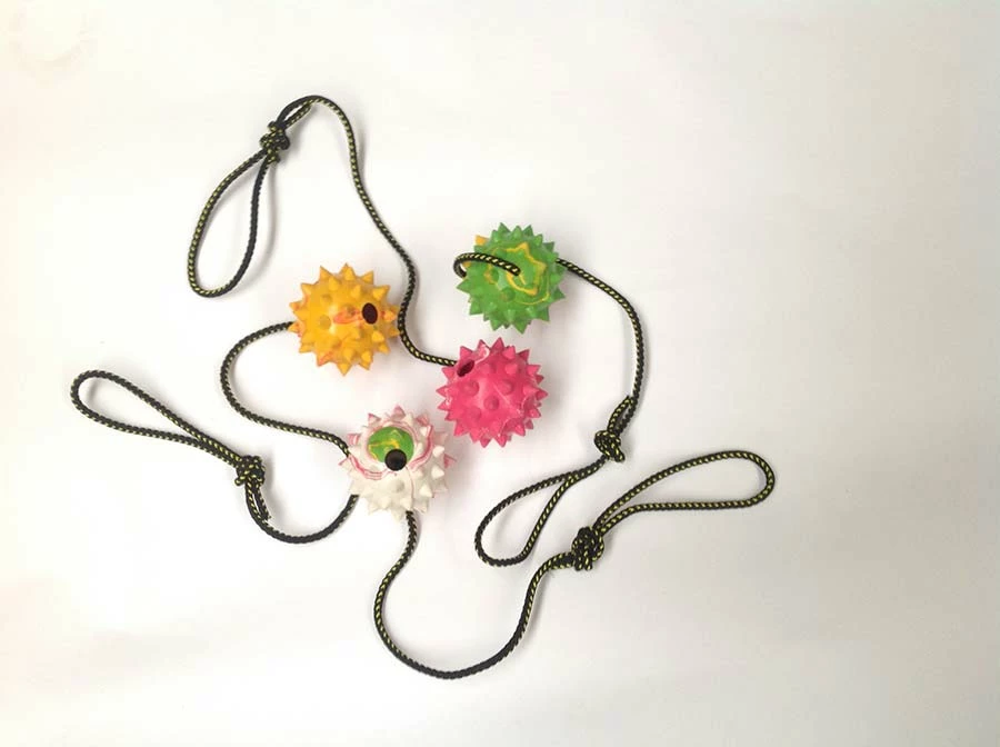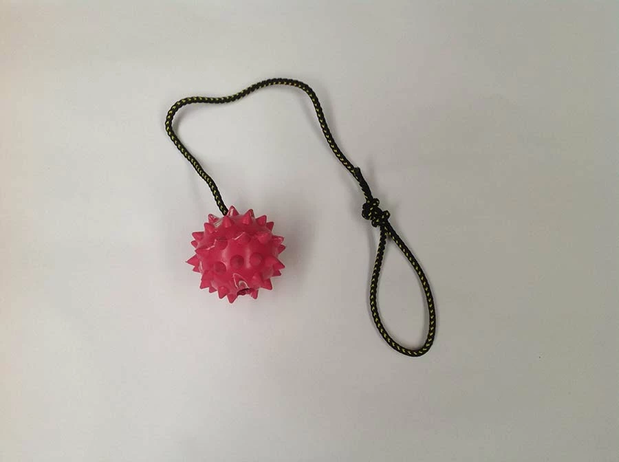 The ball with spikes on the surface provides good grip and massages the gums when the dog bites on the ball. The biting promotes the blood circulation and contributes to a good oral hygiene.