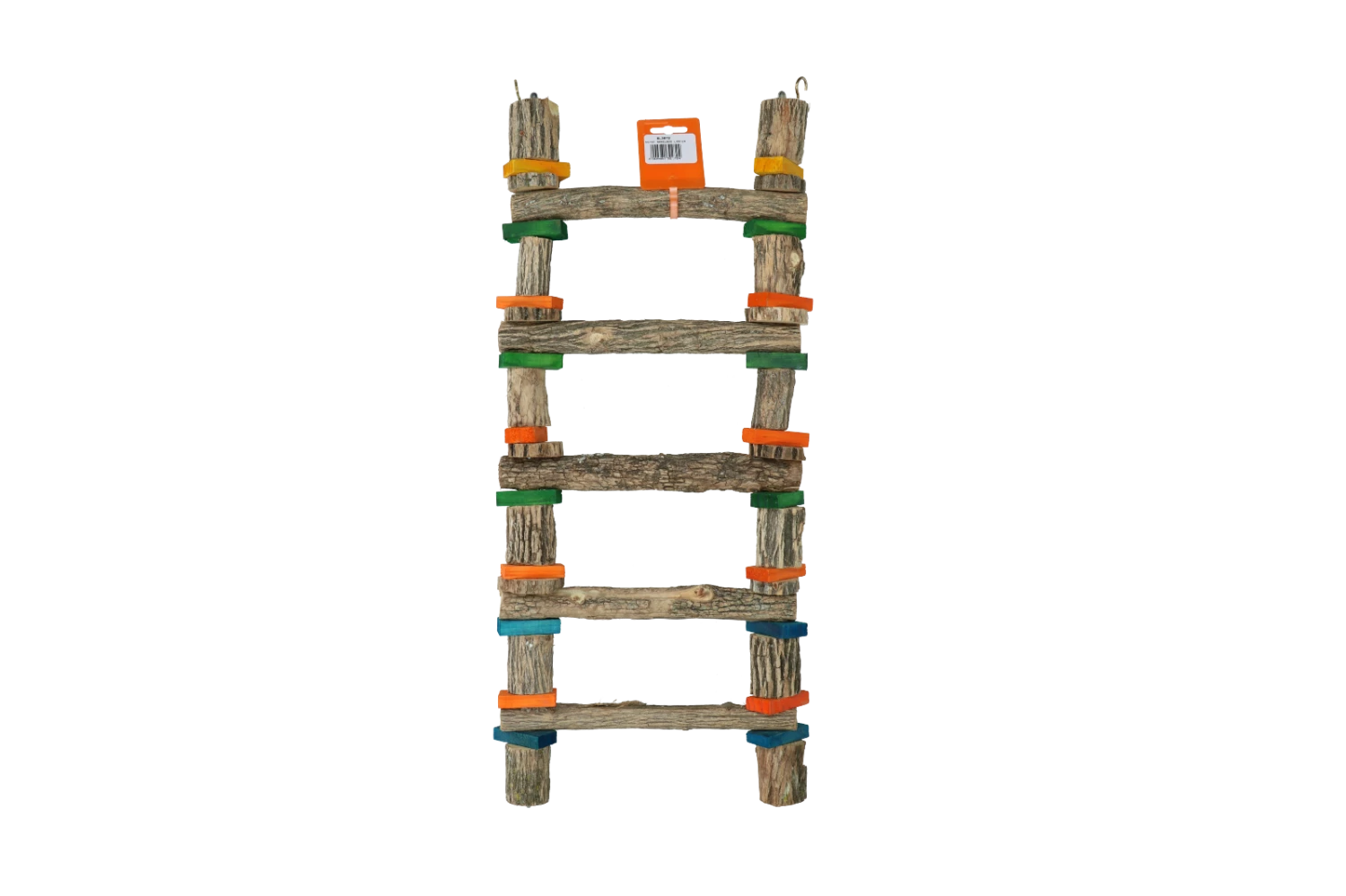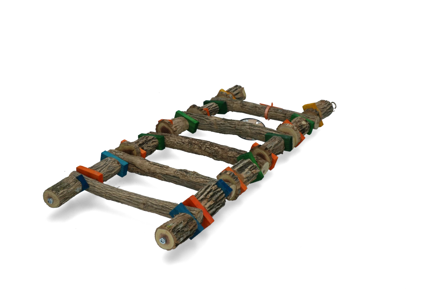 Deze kleurrijke ladder met een natuurlijke uitstraling is geschikt voor grote vogels.