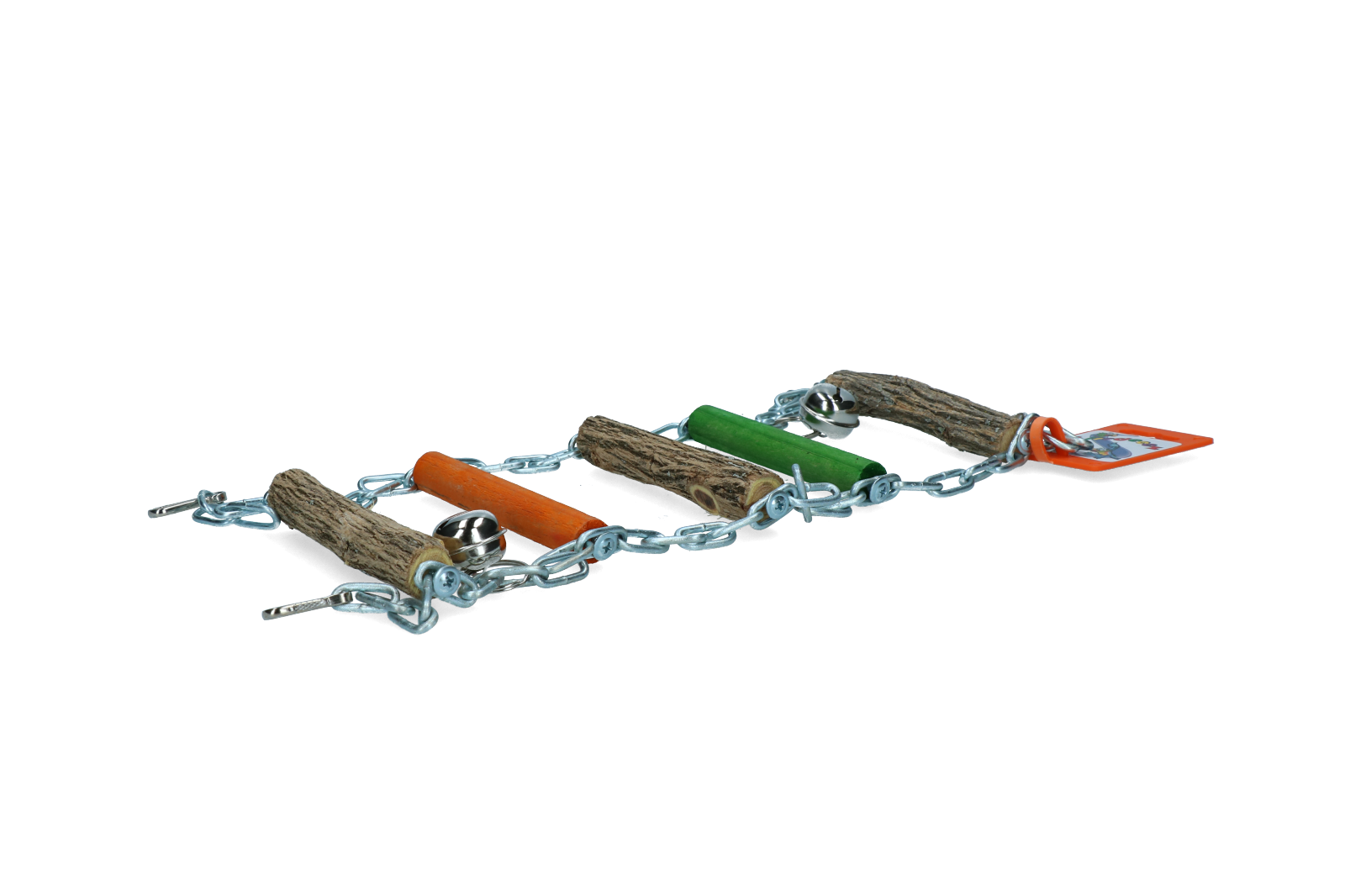 Kleurrijke ladder met hout en ketting is geschikt voor valkparkieten.