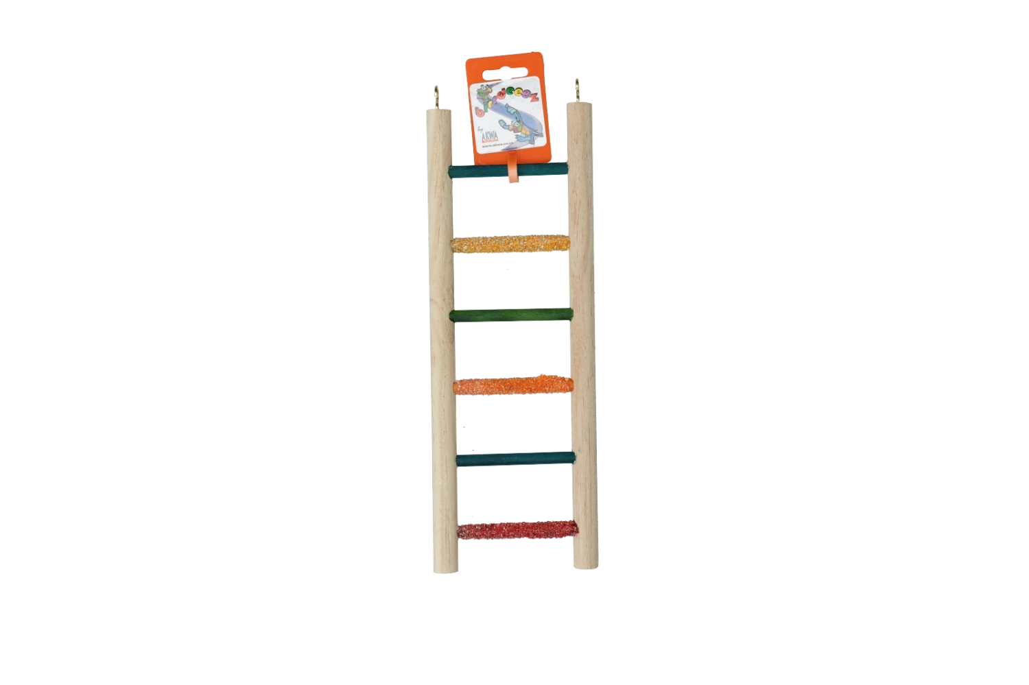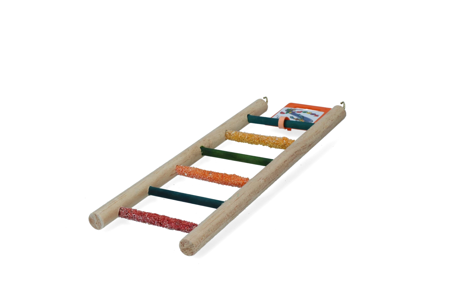 Deze kleurrijke ladder met een natuurlijke uitstraling is geschikt voor valkparkieten.