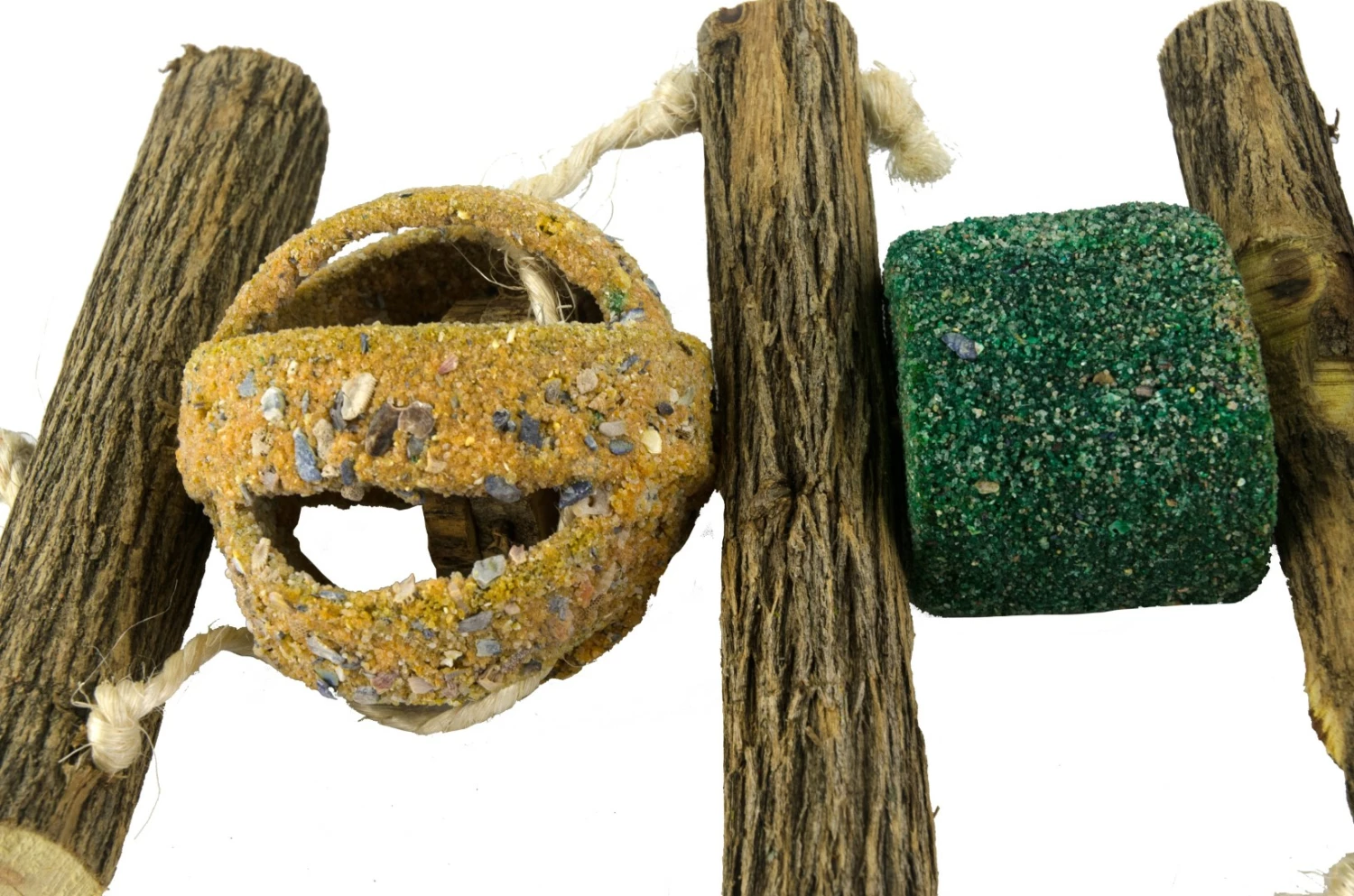 Draagt bij aan het onderhoud van de pootjes en snavel van uw vogel.