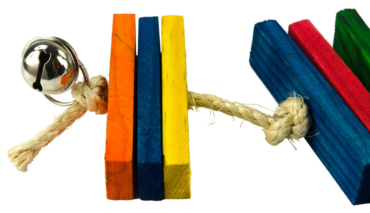Vrolijk de kooi van uw vogel op met dit kleurrijke vogelspeeltje. Dit speeltje bestaat uit kleurijke houten blokjes, touw en belletje voor extra speelplezier. Gemakkelijk aan de kooi te bevestigen d.m.v. het karabijnhaakje. Formaat48 cm lang DoeldierKleine vogels, Parkieten en soortgelijke vogels.