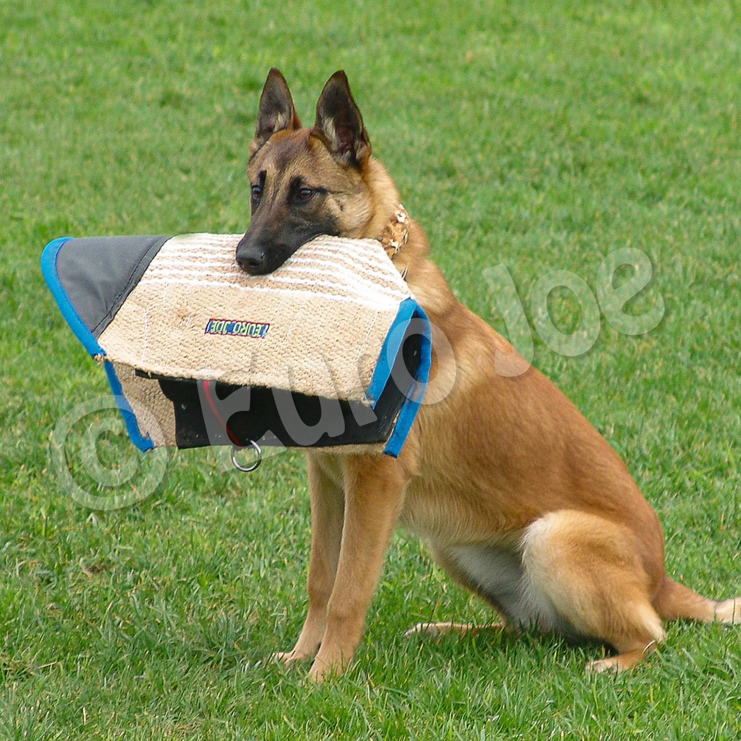 By grabbing the young dog sleeve “Gripper” in the middle you can bring the dog into a “pulling position”, which lets him win and get stronger. After this the sleeve can be easily carried around by the dog as a prey. Easy to keep in balance because it concerns a compact bite piece.