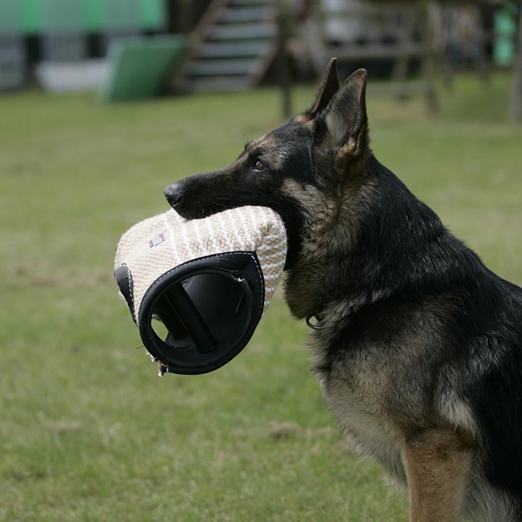 This new bite sleeve is unmatched in its kind! This bite sleeve comes standard with cover. If this cover is worn after repeated use, you can order a new cover. Moreover, you also have the choice between soft or hard. This sleeve is an investment for the future.