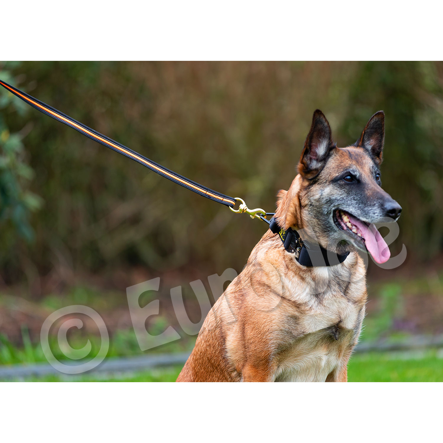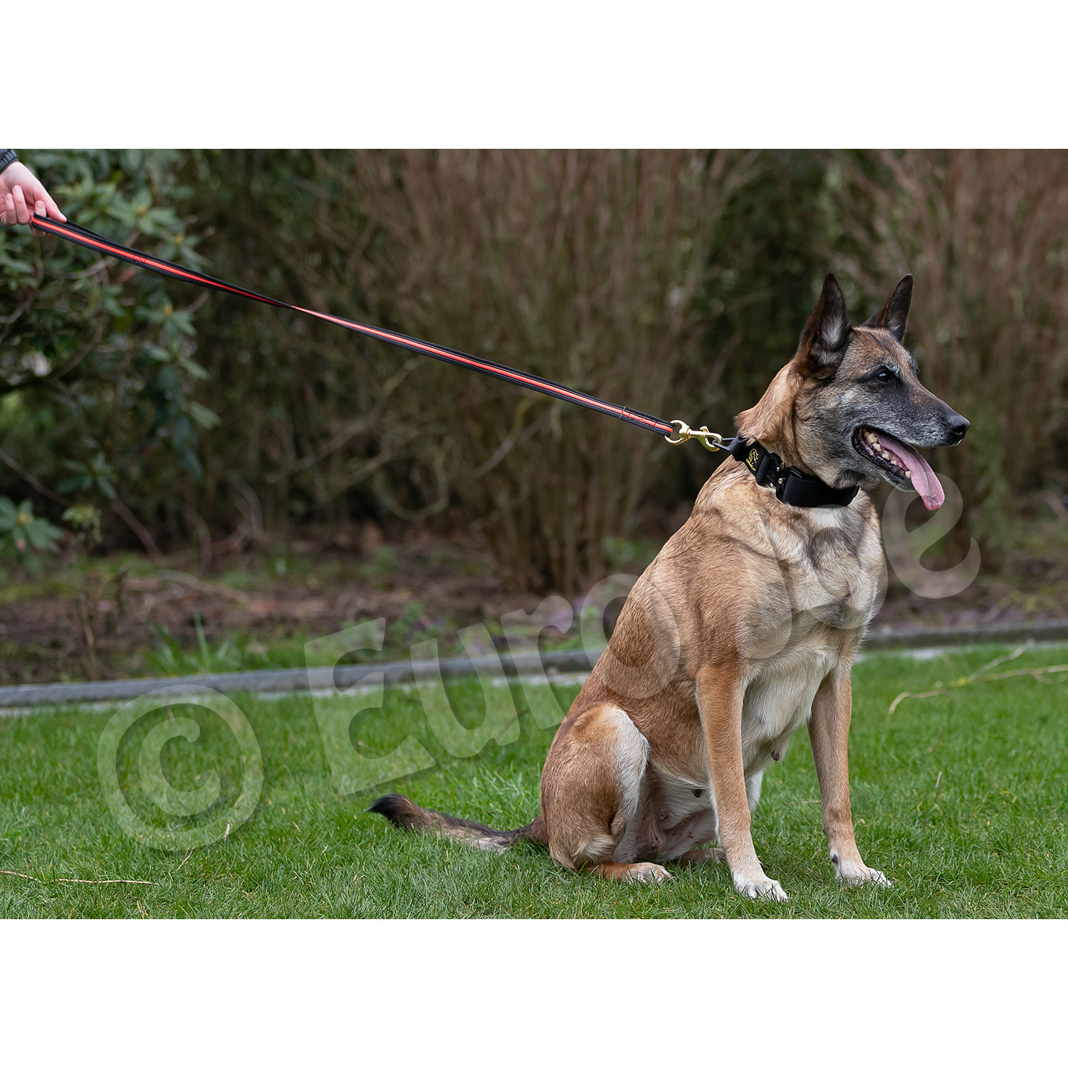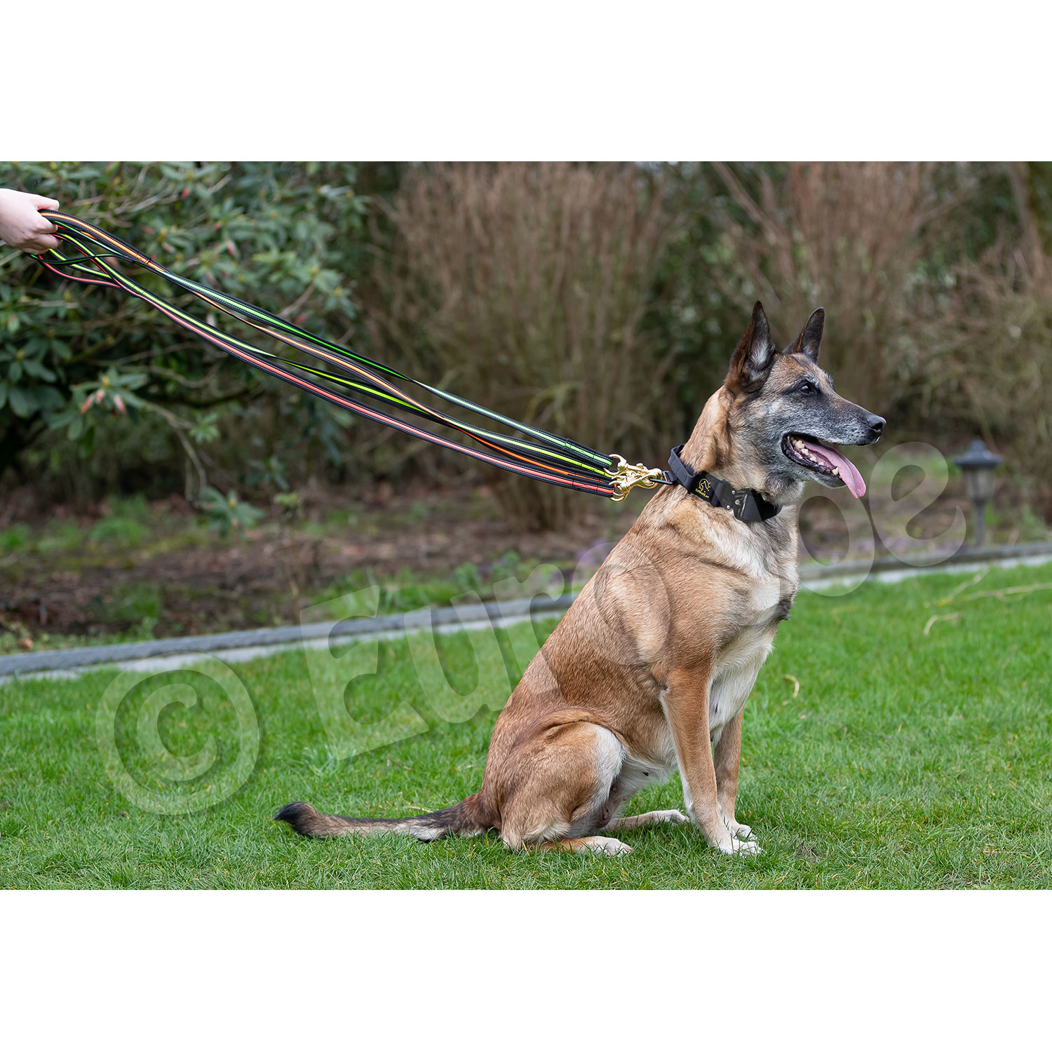 The brass carabiner is very sturdy, so also suitable for the strong four-legged friends.