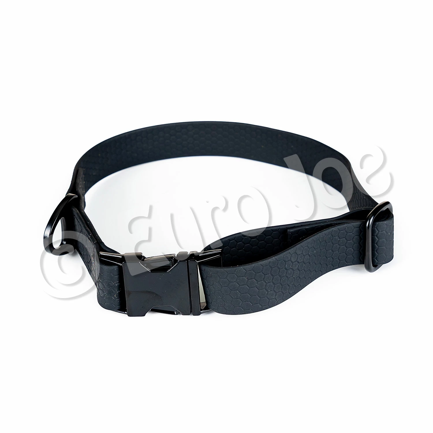 This collar is made of waterproof strap. The strap has a honeycomb pattern (hexagonal) on both sides and has a PVC / TPU coating.