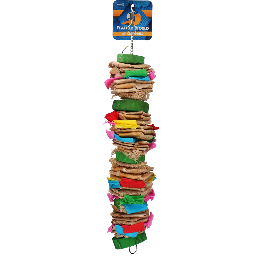 Bestaat onder andere uit javahout en papier en gaat verveling tegen.