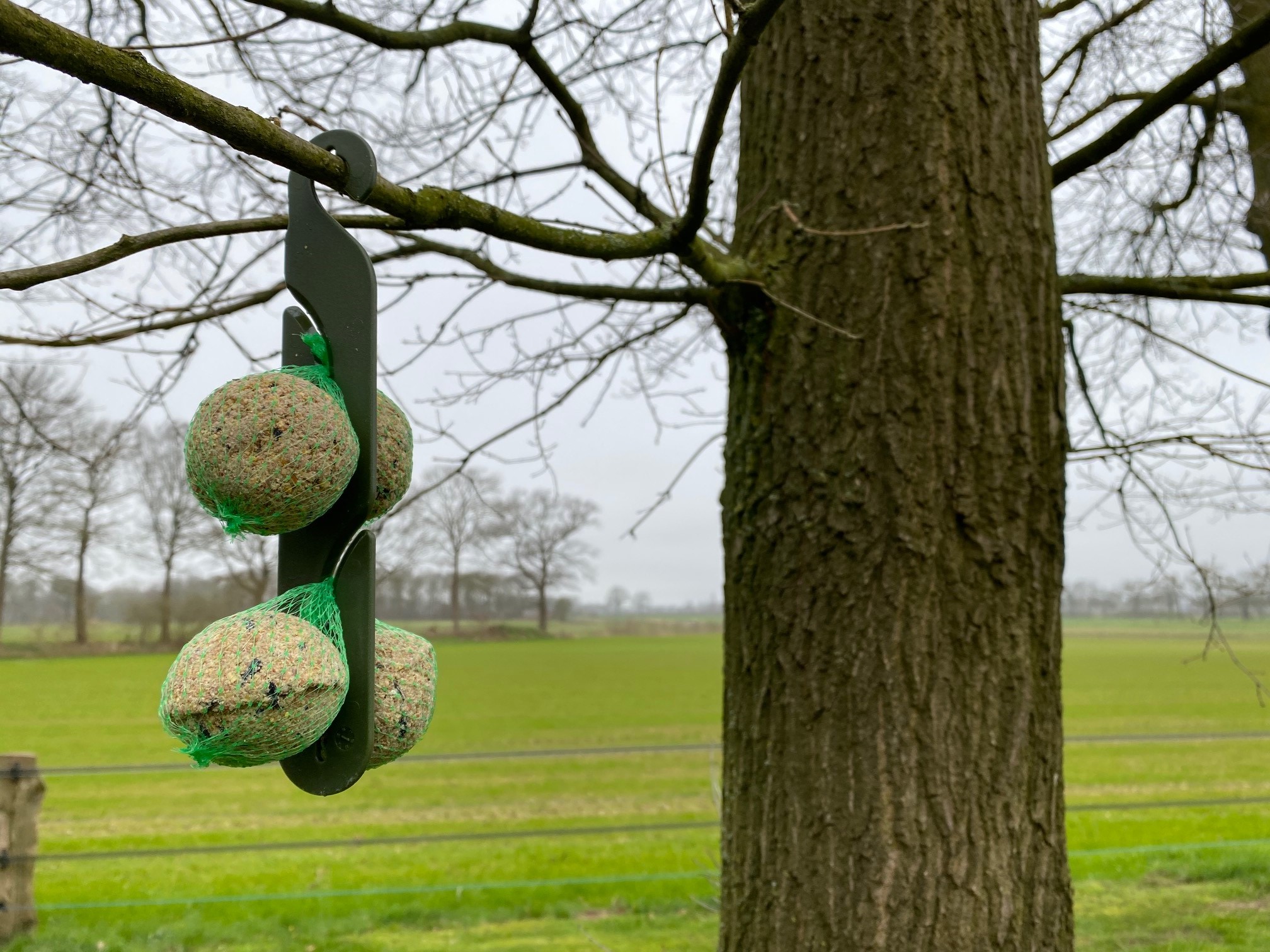 Ophanghaak met mezenbolletjes.
